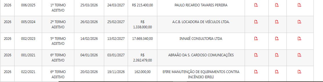 Um dos aditivo mais recente foi assinado em 26 de fevereiro de 2026. O documento estende até 25 de fevereiro de 2027 o aluguel de automóveis sem motorista para uso administrativo da CMM, ao custo mensal de R$ 111,5 mil. Não há detalhes sobre a quantidade de veículos que compõem a frota.