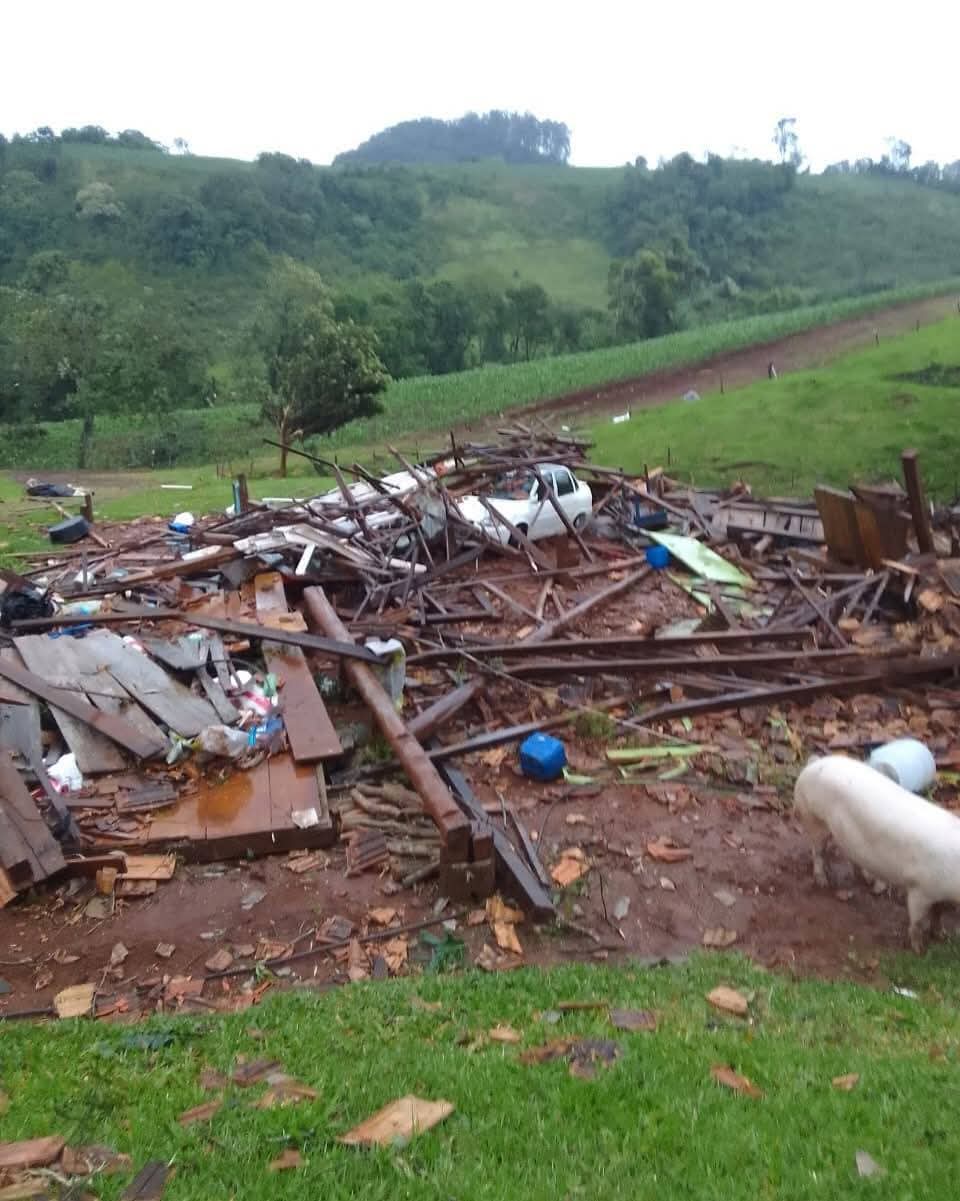 Na Linha Lacerda, interior de Dionísio Cerqueira, três pessoas ficaram feridas e precisaram de atendimento médico no hospital após serem atingidas durante a ventania. O temporal causou destelhamentos, quedas de árvores, prejuízos em comércios e falta de energia elétrica em diversos pontos.