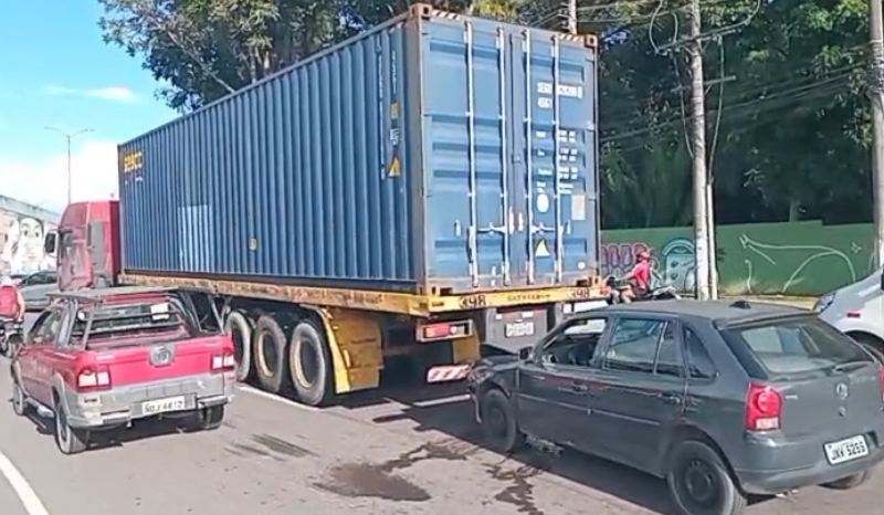 Manaus – Um acidente de trânsito foi registrado na tarde desta sexta-feira (10), em um trecho da avenida André Araújo, na Bola do Coroado, na zona leste-sul de Manaus. A ocorrência envolveu um carro de passeio e uma carreta com contêiner.