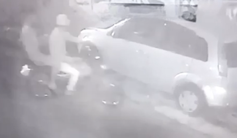 Imagens de circuitos de monitoramento da área registraram toda a ação, que ocorreu de forma rápida. O vídeo mostra dois suspeitos chegando ao local em uma motocicleta. Eles se aproximam do carro, ateiam fogo propositalmente e fogem logo em seguida, tomando rumo ignorado.
