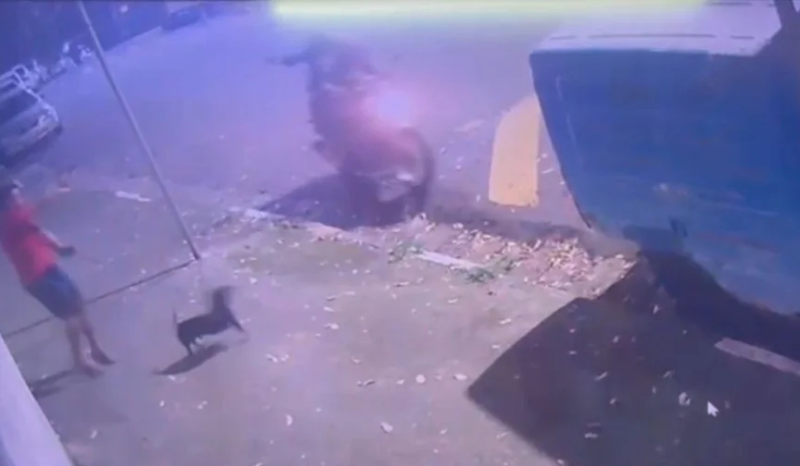 No vídeo, cedido ao site Metrópoles, mostra o PM caminhando na calçada com o cachorro na coleira. Ele para e observa o movimento quando dois homens em uma motocicleta se aproximam dele.