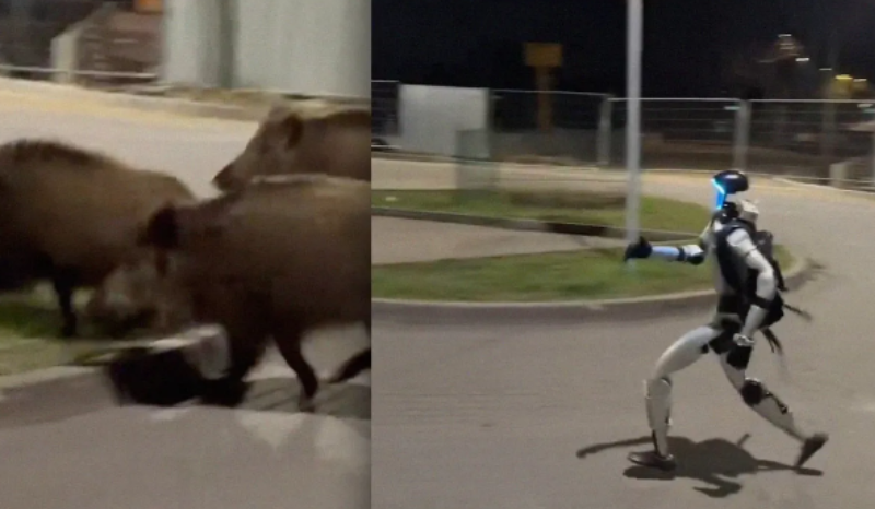 O post VÍDEO: robô humanoide viraliza ao perseguir e espantar javalis para a mata apareceu primeiro em D24AM.